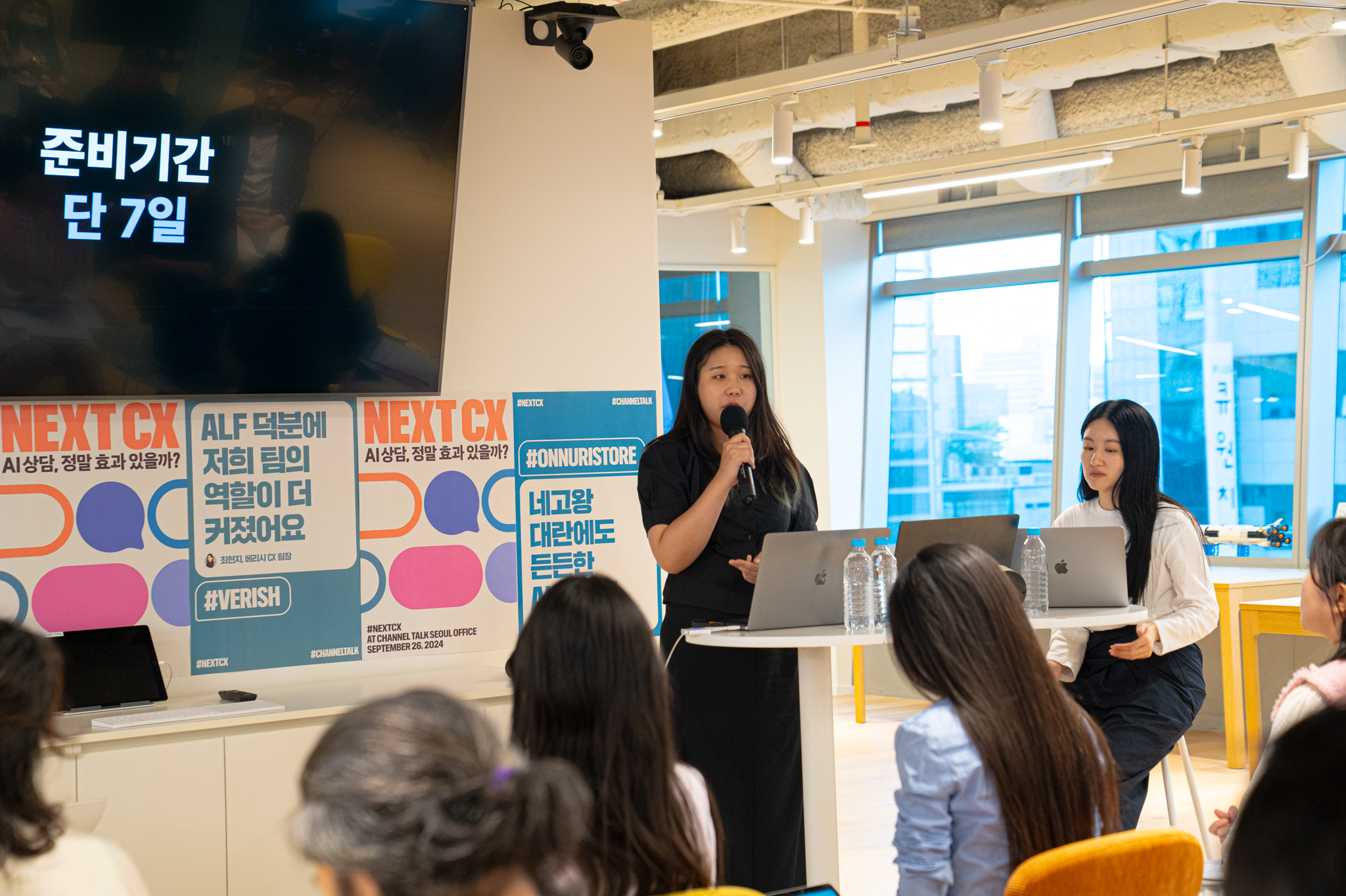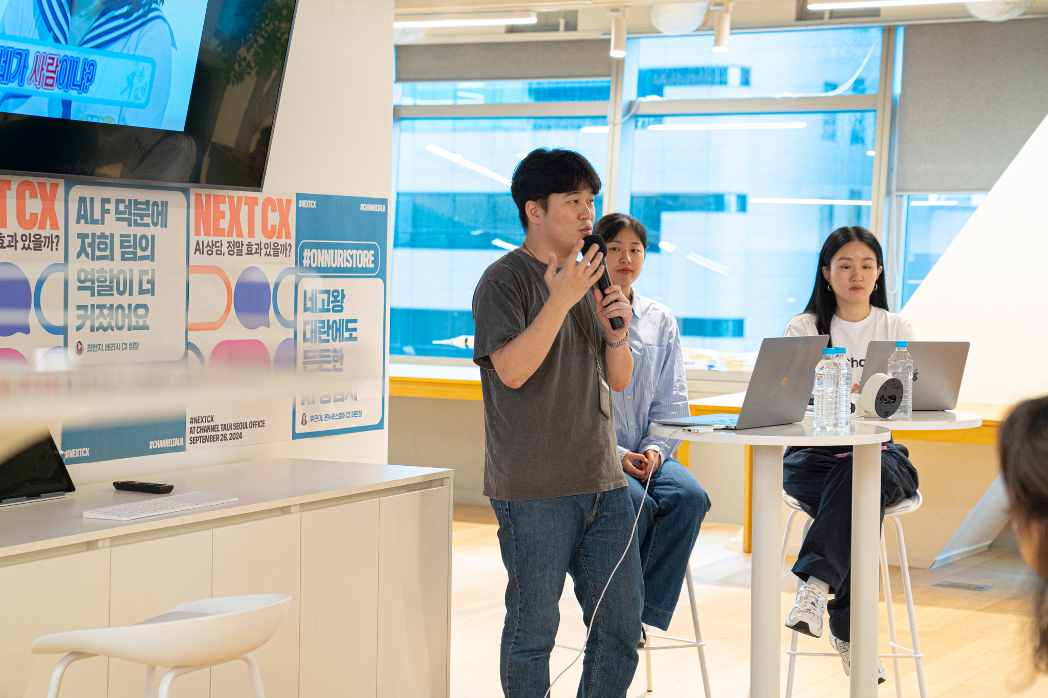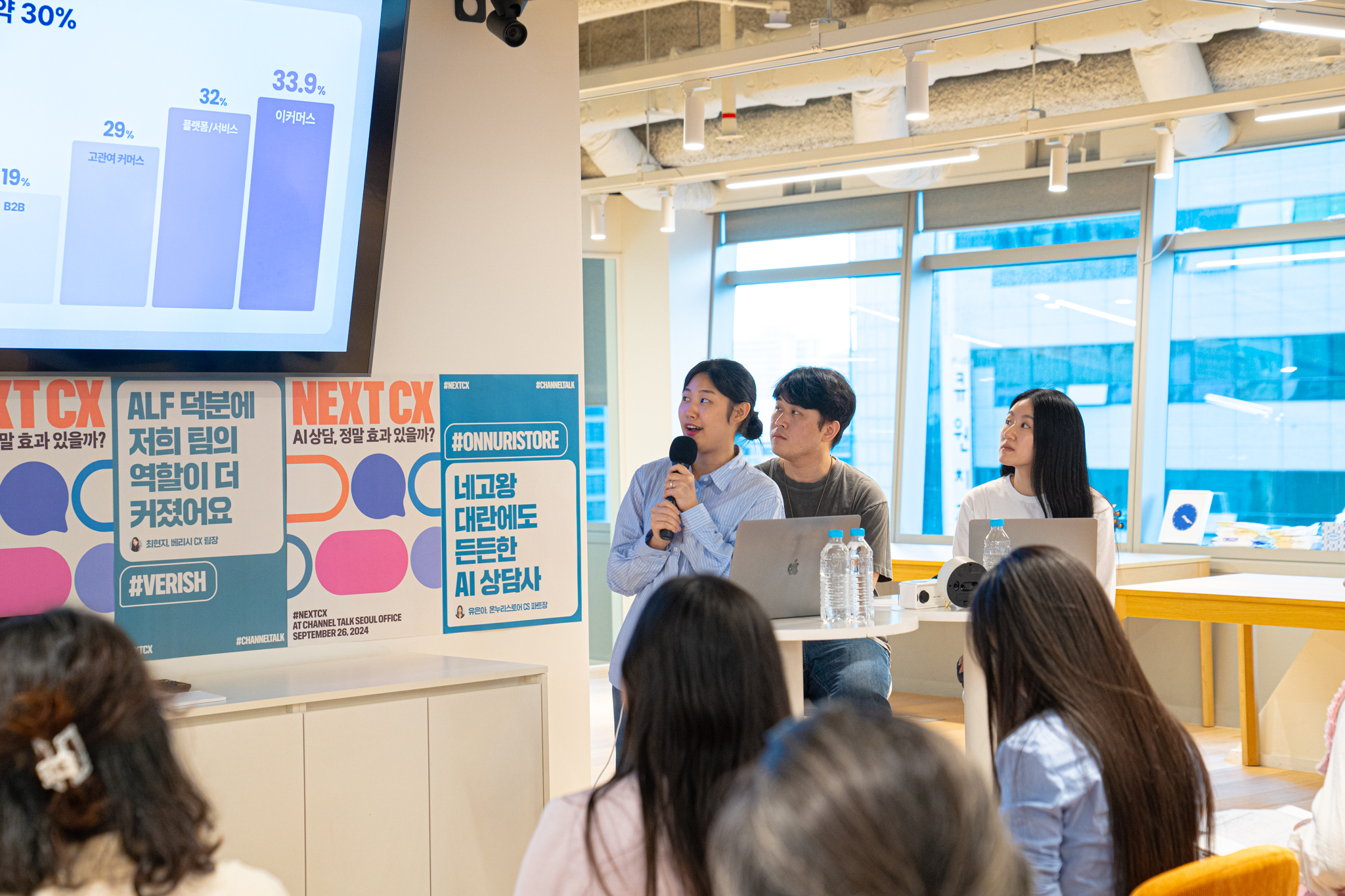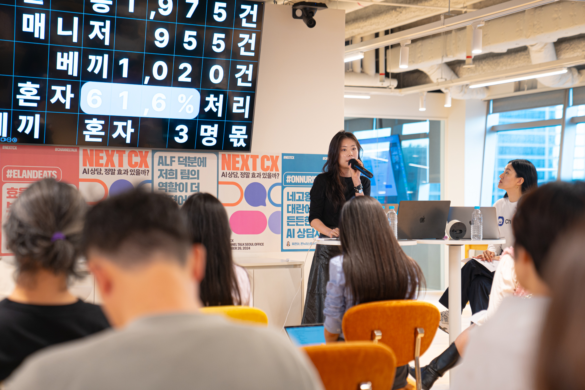 9월 26일, 채널오피스 라운지에서 열었던 ‘NEXT CX: AI 상담, 정말 효과 있을까?’ 세미나는 채널팀이 알프(ALF) 출시 이후 목격해 온 AI 상담 성공사례를 실무자들의 목소리로 전달하는 자리였는데요. 채널톡 AI 담당자들과 함께 이랜드이츠, 온누리스토어, 딥다이브의 CX 담당자들이 연사로 섰으며 온, 오프라인을 합쳐 무려 300명 이상의 신청자가 몰렸습니다.