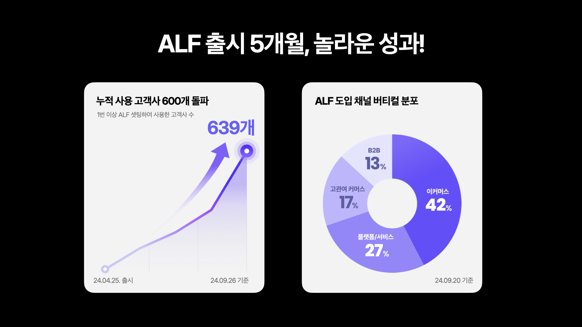 이지현 PM: 알프는 현재 누적 사용 고객사 600곳을 돌파했습니다. 이커머스뿐 아니라 B2B, 플랫폼/서비스처럼 다양한 버티컬에서 사용하고 계세요.