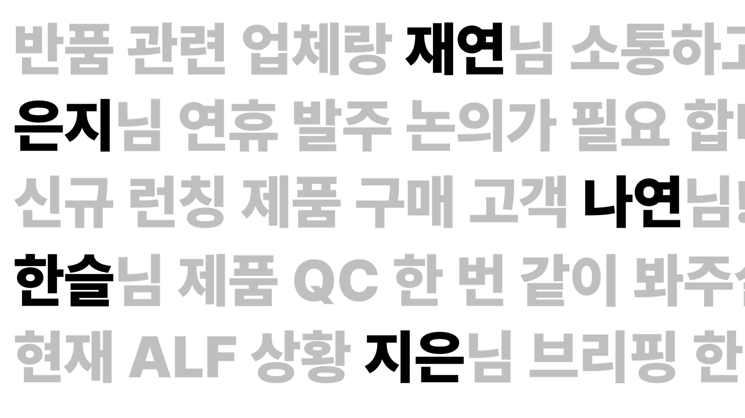 그런데 지금은 저를 찾는 일은 거의 없는 것 같고, 재연, 은지, 나연, 한슬, 지은님이 각각의 분야에서 퍼포먼스를 내면서 러너로 뛰고 계세요. 이렇게 다른 팀에서 이 분들을 찾아 주시고요. 저희 팀은 이제 모두가 다 러너로 뛰고 계시고, 여러분들도 다 러너로 뛰실 수 있습니다.
